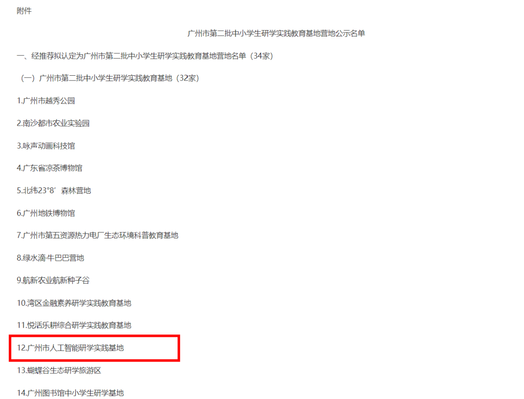 【喜讯】广州市人工智能研学实践基地被认定为“广州市第二批中小学生研学实践教育基地”